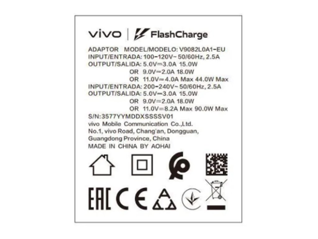 vivo 90 W FlashCharge ChargerDodatočné parametre