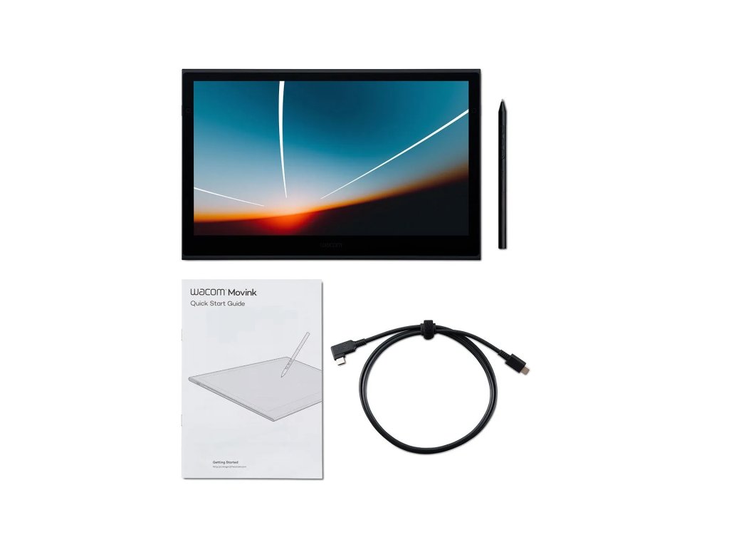Wacom Movink 13 Ponořte se do nové generace kreativity s naším průlomovým OLED displejem s perem, který byl navržen speciálně pro digitální kreativce na cestách. Zažijte bezkonkurenční výkon a přenosnost, protože Wacom Movink kombinuje nejlepší zážitek z pera s brilantním 13,3'' Full HD OLED displejem Samsung, to vše v super tenkém a ultralehkém zařízení. Ať už jste profesionální umělec, vývojář her, kameraman, fotograf nebo student designu, Wacom Movink je vaším dokonalým kreativním společníkem . Díky elegantnímu designu a pokročilé technologii nabízí Movink hlubší černou, vyšší kontrast a zářivé barvy, což zajišťuje pohlcující a přesný tvůrčí zážitek. Objevte budoucnost digitálního umění s Wacom Movinkem. *První profesionální OLED displej s perem a sklem Corning Gorilla Glass *Nízká hmotnost, štíhlý a robustní *Pokrytí DCI-P3 100 % a Adobe RGB 95 % *Vysoká přesnost barev a kalibrace z výroby *Možnosti kalibrace pro přesnou profesionální správu barev (2 profily uložené v zařízení) *Připojení jedním kabelem, dvě programovatelná boční tlačítka *Vícedotykové ovládání a ovládání perem včetně gest perem *Používejte pera třetích stran, jako například Lamy, Staedtler nebo Kaweco Informace o displeji Velikost obrazovky: 13'' Rozlišení obrazovky: Full HD Barevná hloubka: 1,07 miliardy (10 bitů), 10 bitů x RGB = 30 bitů Technologie: OLED Sklo / povrch: AG sklo + AF povlak Aktivní plocha: 294 × 165 mm (11,6 x 6,5 palce) Poměr stran: 16:9 Podporované rozlišení: 640x480 při 60 Hz 720x480 při 60 Hz 720x576 při 50 Hz 800x600 při 60 Hz 1024x768 při 60 Hz 1280x720 při 50/60 Hz 1280x1024 při 60 Hz 1600x1200 při 60 Hz 1920x1080 při 50/60 Hz Rozteč pixelů: 0,15300 (V) x 0,15300 (Š) mm Poměr pokrytí barevného gamutu: DCI-P3 100 % (CIE 1931) Adobe RGB 95 % (CIE 1931) Kontrastní poměr: 100 000:1 Jas: 350 cd/m2 Doba odezvy (G2G): 0,2 ms Specifikace pera Úrovně tlaku pera: 8192 úrovní Typ pera: Citlivý na tlak, bezdrátový, bez baterií Počet přepínačů: 3 boční přepínače Podpora naklápění pera: 60 stupňů Rozlišení pera: 5080 lpi Technologie pera: Technologie elektromagnetické rezonance Výška pro čtení: 11 mm Maximální míra hlášení: 240 hlášení/sekundu Rozměry pera: 160 × 8,4 mm Hmotnost pera: 9,7 g Specifikace dotykového ovládání Vícedotykové ovládání: Ano Dotyková technologie: Projektovaná kapacitní technologie Dotyková kapacita: 10 prstů Konektivita I/O porty: 2 x USB-C DisplayPort Rozměry a hmotnost: Rozměry produktu (D x Š x V) (mm): 319,5 × 205,2 × 4 až 6,6 mm Hmotnost produktu (kg): 420 g Systémové požadavky Systémové požadavky: Windows 10 (nejnovější servisní balíček/build) nebo novější, macOS 12 nebo novější, Android 8.0 a vyšší, nejnovější verze ChromeOS Hardwarové požadavky: Port USB-C s režimem DisplayPort™ Alt nebo Thunderbolt 3 nebo novějšímDodatočné parametre