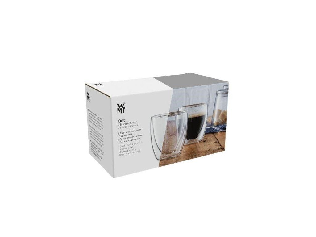 Sklenice na espresso z kolekcie WMF Kult predstavujú dokonalú rovnováhu medzi modernými funkciami a pútavým dizajnom. Dvostenná konštrukcia termo sklárne udržiava horúci aj studený obsah dlhšie v perfektných teplotách - ideálne pre širokú škálu použití, od klasického espressa po horúce alebo studené dezerty, amuse-bouche a mnoho ďalšieho - s bezpečným tepelnodolným sklom pre pitie bez manipulácie, ktoré je chladné na dotyk a bez kondenzácie.