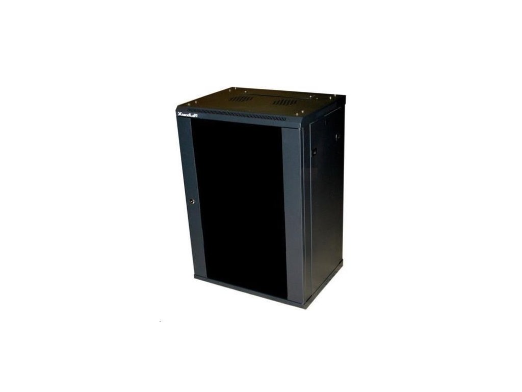 XtendLan 19" nástěnný rozvaděč 15U 600x450, nosnost 60 kg, skleněné kouřové dveře, rozložený, černý