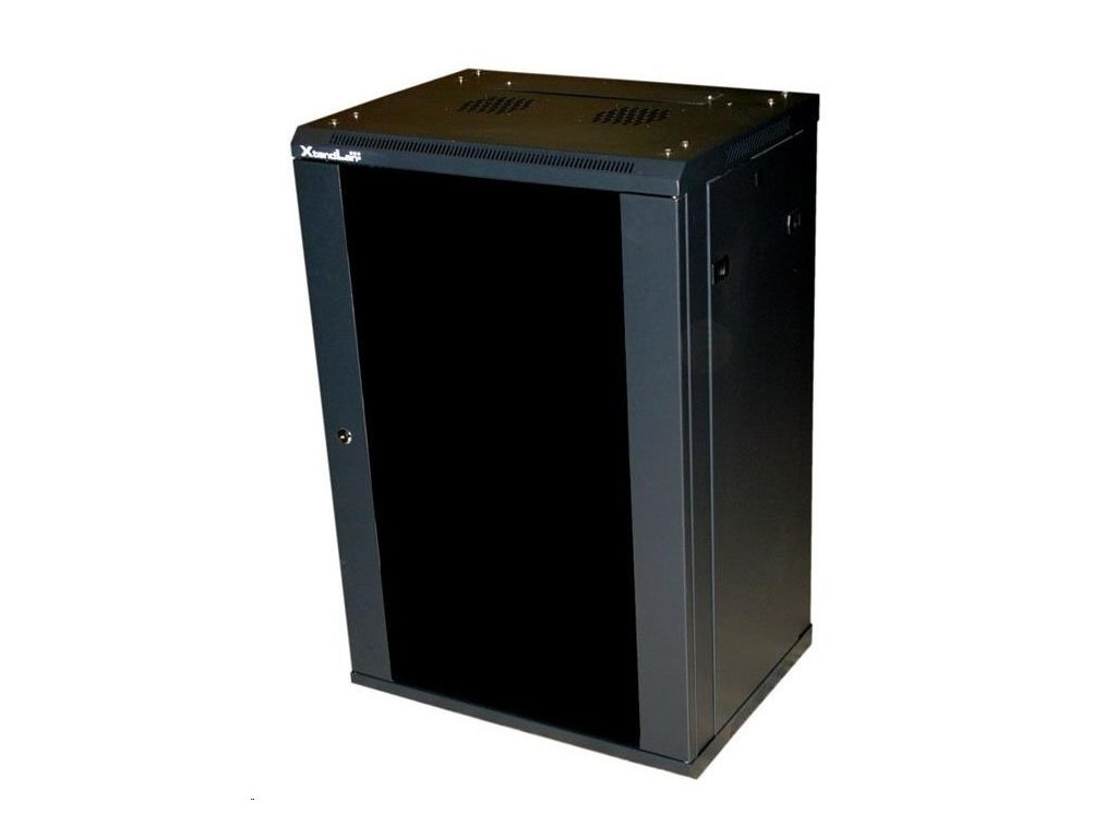 XtendLan 19" nástěnný rozvaděč 22U 600x600, nosnost 60 kg, skleněné kouřové dveře, rozložený, černý