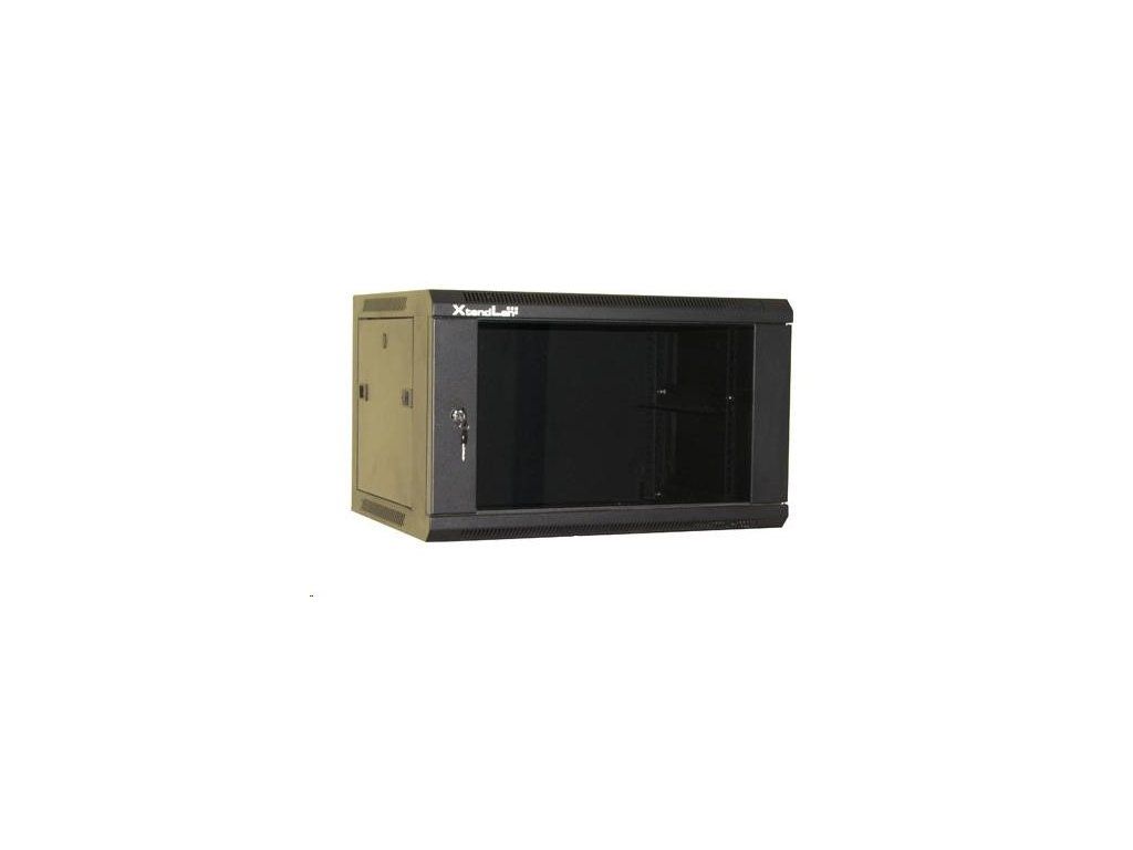 XtendLan 19" nástěnný rozvaděč 9U 600x450, nosnost 60 kg, skleněné kouřové dveře, svařovaný, černý